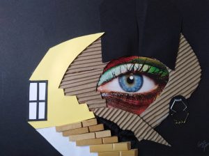 Quédate en casa. Collage (cartulina, metal y madera). 30 x 40