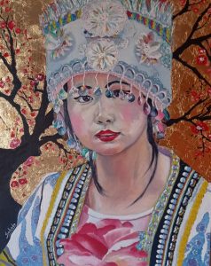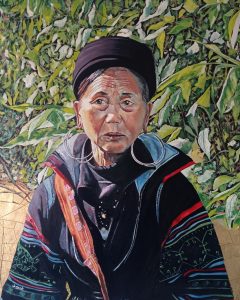 Mujer de la antigua etnia china Hmong. Óleo y pan de oro / lienzo. 92 x 73