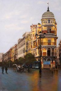Luz en la Calle Sierpes. Acrílico / lienzo. 130 x 116