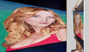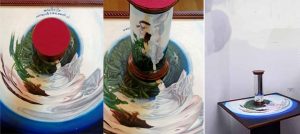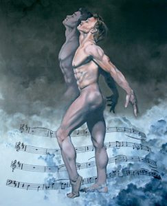 Anamorfosis. La Aurora (Homenaje a W. A. Bouguereau). Óleo / lienzo con espejo circular. 50 x 50