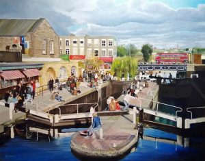 Domingo en mercado (Camdem Lock, Londres). Óleo / lienzo. 130 x 146