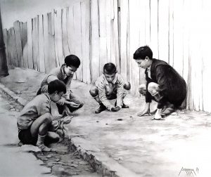 Jugar al Gua. Lápiz de grafito / papel. 60 x 70