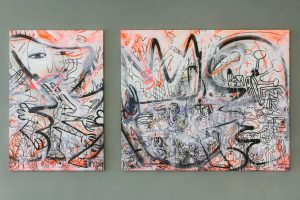Lógica e Intuición (Serie grafitis imaginarios). Acrílico, spray y rotuladores / lienzo. 97 x 181