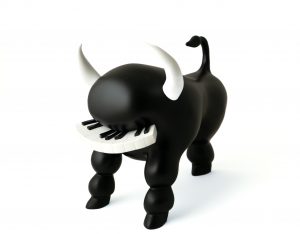 Piano Bull. Classic Black. Resina pintada a mano con acrílicos. Acabado mate. 19 x 24 x 14
