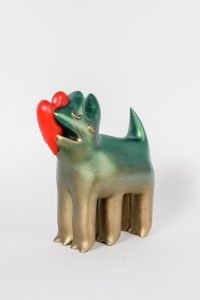 True Love (Más raro que un perro verde). Bio plástico y cerámica pintado a mano con acrílicos. 23 x 19 x 12