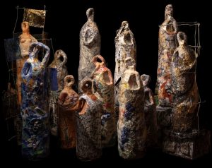 Ofrendas del mar. Conjunto de esculturas en materiales de recuperación. Diferentes medidas por unidad. Diám. 30 / 45 x altura 50-75
