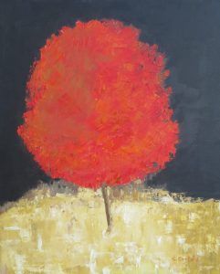 Árbol rojo. Óleo / lienzo y espátula. 46 x 38