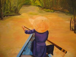 Saigón (Vietnam) Ho Chi Minh remando. Óleo / lienzo. 46 x 61