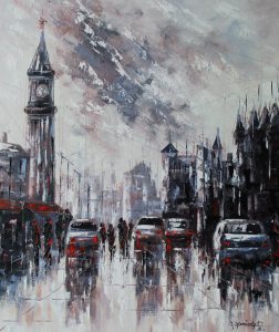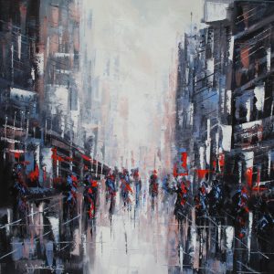 Día lluvioso, Nueva York. Óleo / lienzo. 60 x 60. Año 2019