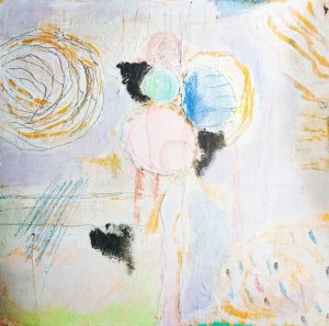 En busca del arte perdido (V). El prestidigitador del tiempo en el espacio. Óleo y esmalte sintético / papel. 50 x 30