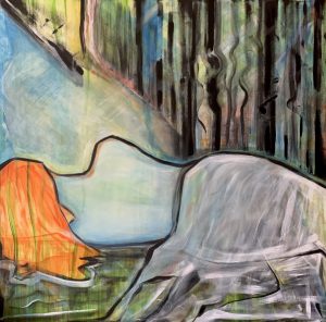 Verde son tus besos, 81 x 100 cm, acrílico sobre lienzo, 2022