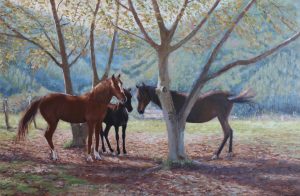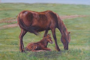Yegua y su potrillo. Óleo / lienzo. 55 x 81