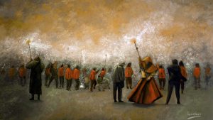 La fiesta del fuego. Mixta (acrílico y óleo) / tabla. 40 x 72