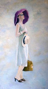Mujer con sombrero. Óleo / tabla. 68 x 37