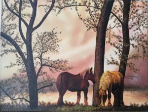 PASTANDO EN EL CAMPILLO, EL ESCORIAL. Óleo.(80x40 cms)/Junio 2020