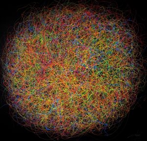 JC Santoscoy. Macrocosmos XXI. Tinta al hilo en mano alzada. 150 x 150
